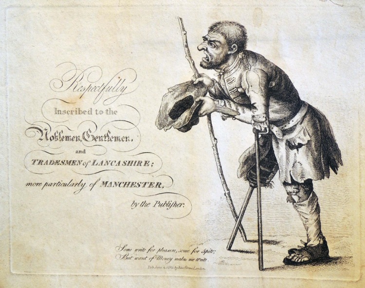 Британский сатирик Джон Коллиер (1708-1786), используя псевдоним Тим Боббин, создавал вывески для гостиниц, раскрашенные панно и гротескные карикатуры, которые широко распространял в американских колониях. Он распространял свои собственные работы, путешествуя по всей северной Англии, собирал заказы на книги и картины, «… В 1773 году было опубликовано « Очернение человеческих страстей » , элитное издание его карикатур, которое действовало как каталог, в котором он назвал себя «Ланкаширским Хогартом »